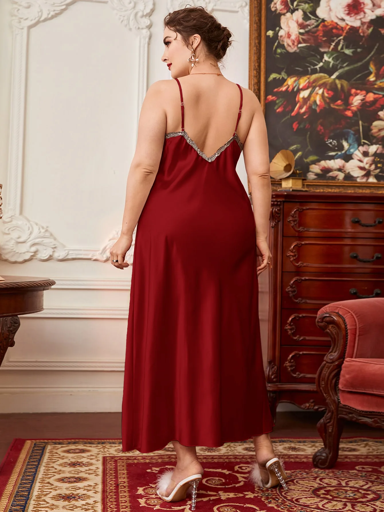 JENGS Top Quality Plus Size Pajamas Suspender Skirt Lace Nightgown Long Oversized Silk Kimono Robes Women